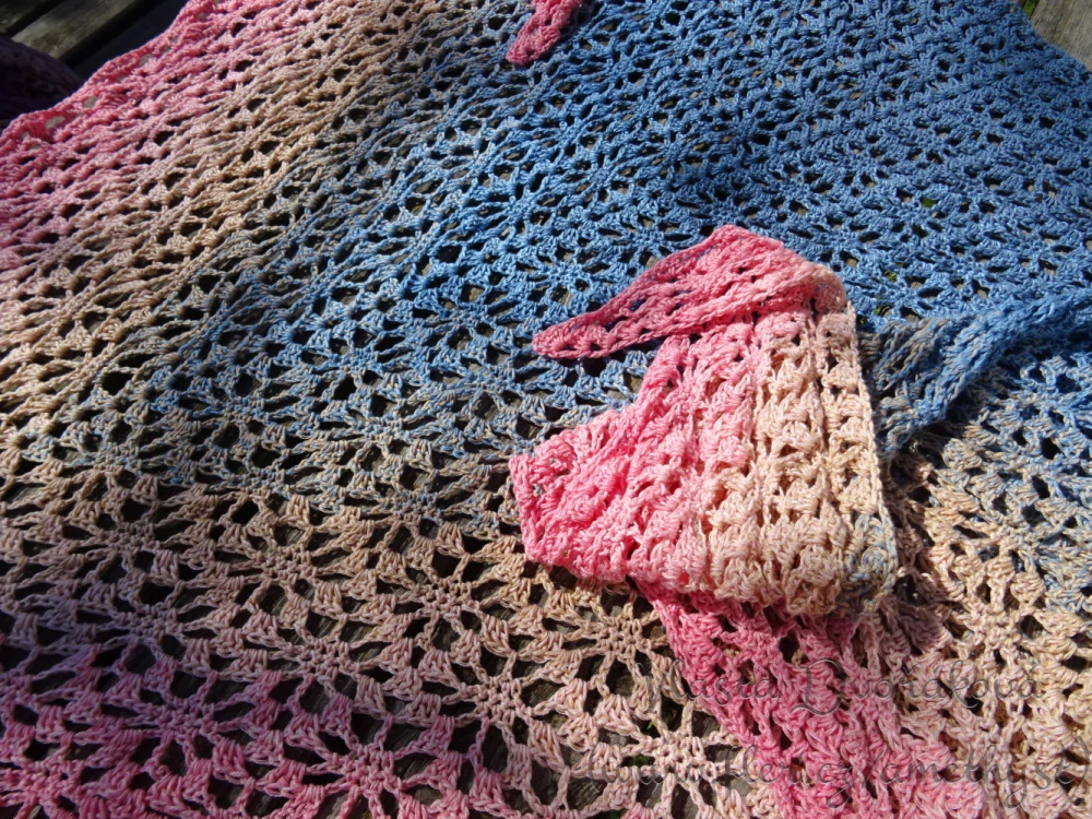 Složení: 55% bavlna, 45% polyakryl, Flowers 262, háčkováno volněji - spotřebováno skoro celých 1000 metrů