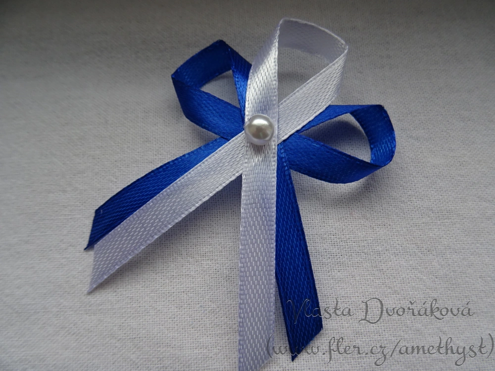 Vývazek s perličkou - modrá královská 40/bílávyrobíme na zakázku do 2 týdnů 200 ks11 Kč/ ks9 Kč bez DPH